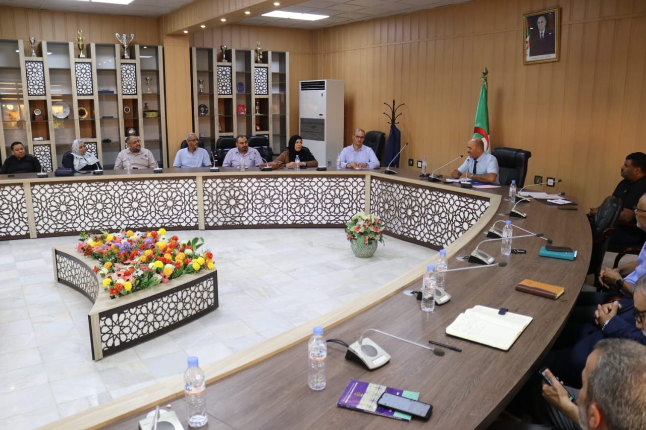 جاء اللقاء بدعوة من مدير الجامعة، البروفيسور عبد الحميد جفال، وبحضور السيد حكيم هنانو، الأمين العام للجامعة، والأستاذ فاتح دبلة، نائب مدير الجامعة المكلف بالعلاقات الخارجية والتعاون الدولي والتظاهرات العلمية، إلى جانب عدد من عمداء الكليات ومديري الملحقات، فيما حضرت من جانب الفرع النقابي الأستاذة نعيمة السعدية، رئيسة الفرع النقابي، رفقة عدد من الأساتذة الممثلين لأعضاء المكتب النقابي.
