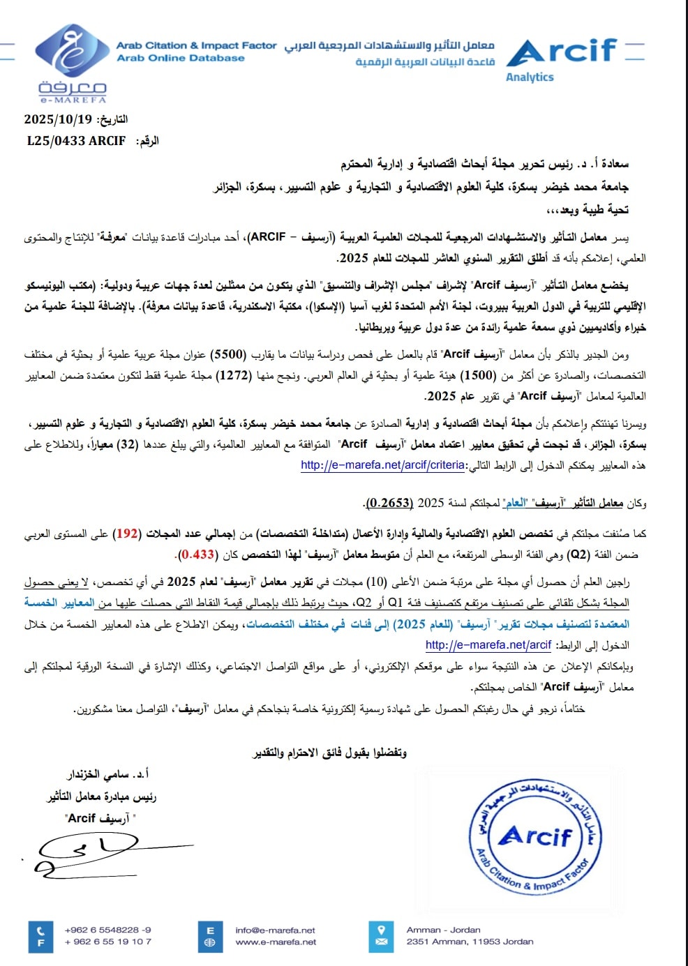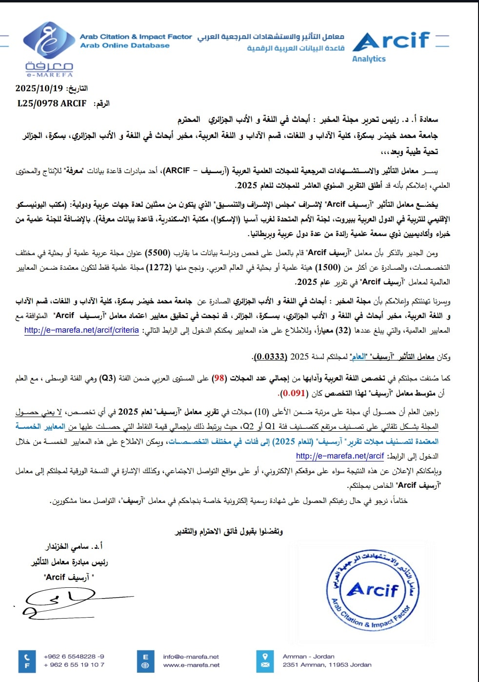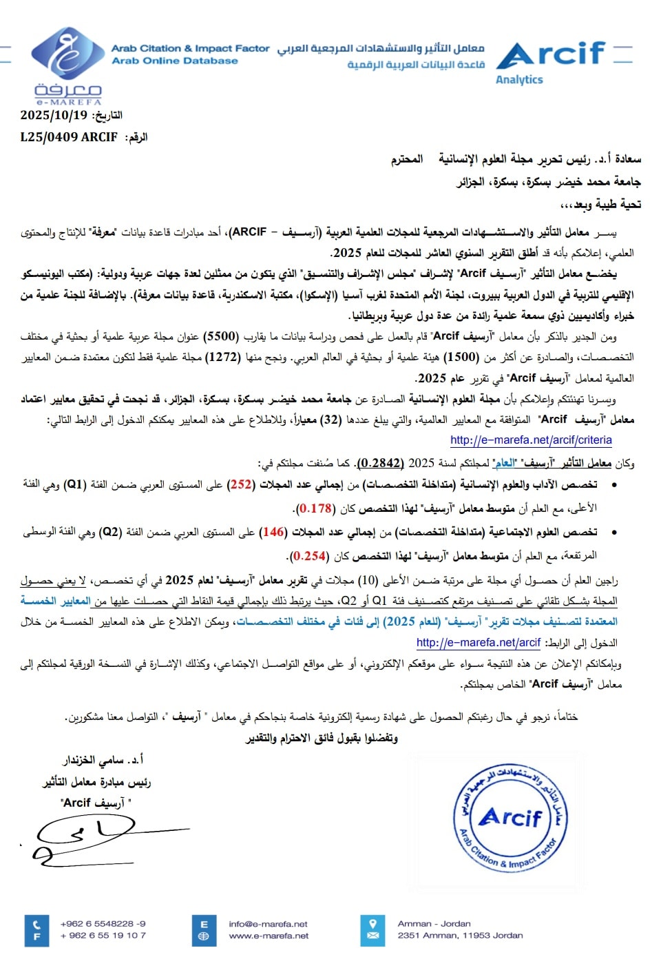 567675934 1260438696111716 4720966439343928415 nيتقدم السيد مدير جامعة محمد خيضر – بسكرة، البروفيسور عبد الحميد جفال، باسمه ونيابة عن كافة أسرة الجامعة، بأسمى عبارات التهاني والتقدير إلى هيئات تحرير المجلات العلمية التالية: