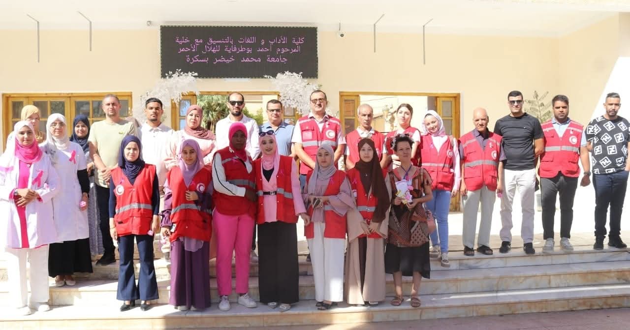 نظمت كلية الآداب واللغات بجامعة بسكرة صبيحة اليوم الثلاثاء 07اكتوبر 2025، بالتعاون مع المركز الصحي للجامعة وخلية الهلال الأحمر الجزائري "أحمد بوطرفاية"، فعاليات أكتوبر الوردي، الشهر العالمي للتوعية بسرطان الثدي.